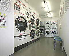 明るく清潔な店内には最新の機器が取り揃えてあります。店内奥には洗濯機、左側には乾燥機があります。18kgが1台、8kgが2台の計3台設置しています。8kg洗濯機は上が乾燥機になっています。洗い終わったらすぐ上で乾燥する事が出来ます。高性能のドラム式洗濯機なので、洗浄力が高くキレイに仕上げることが出来ます。洗剤・ソフターを自動投入してくれるので面倒がありません。 |