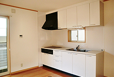 02.大きい紫外線防止ガラスから空が見えるキッチン