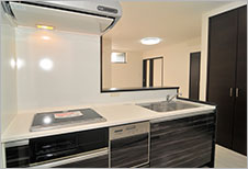 ・対面システムキッチンとカウンターとIHクッキングヒーター